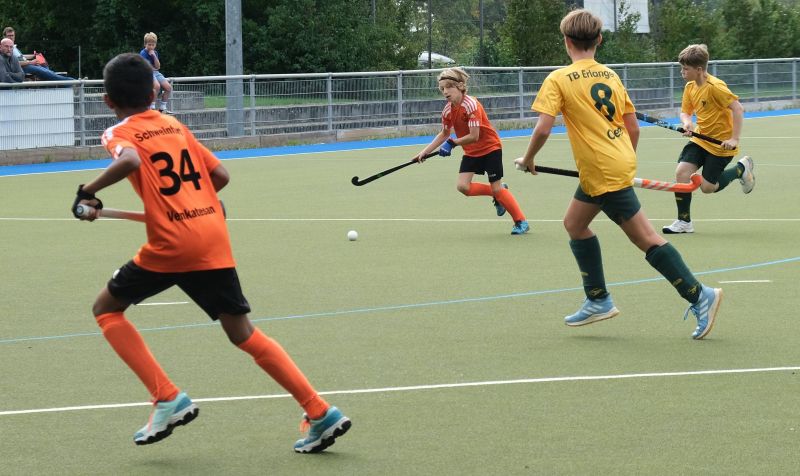 Die Knaben B des HC Schweinfurt haben sich mit einem 4:1 (1:0) Heimsieg gegen TB Erlangen auf den 2.ten Tabellenplatz verbessert und beste Chancen die Zwischenrunde am 04. / 05. Oktober zu Hause ausrichten zu dürfen.